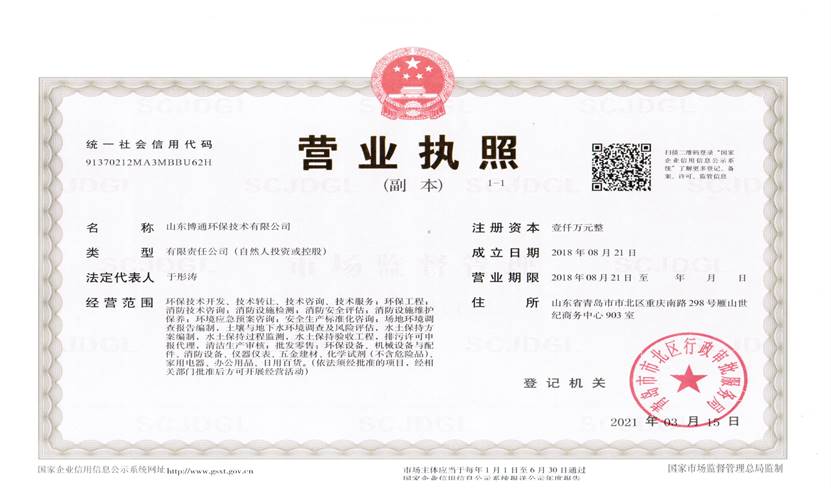 山東博通環(huán)保技術(shù)有限公司是一家專業(yè)從事環(huán)保、安全、消防的多元化技術(shù)服務(wù)公司,公司致力于打造專業(yè)的技術(shù)服務(wù)團(tuán)隊(duì),立足青島,輻射山東,服務(wù)范圍涵蓋:環(huán)保技術(shù)開發(fā)、技術(shù)轉(zhuǎn)讓、技術(shù)咨詢、技術(shù)服務(wù);環(huán)保工程;消防技術(shù)咨詢;消防設(shè)施檢測;消防安全評(píng)估;消防設(shè)施維護(hù)保養(yǎng);環(huán)境應(yīng)急預(yù)案咨詢;安全生產(chǎn)標(biāo)準(zhǔn)化咨詢;場地環(huán)境調(diào)查報(bào)告編制,土壤與地下水環(huán)境調(diào)查及風(fēng)險(xiǎn)評(píng)估,水土保持方案編制,水土保持過程監(jiān)測,水土保持驗(yàn)收工程,排污許可申報(bào)代理,清潔生產(chǎn)審核;批發(fā)零售:環(huán)保設(shè)備、機(jī)械設(shè)備與配件、消防設(shè)備、儀器儀表、五金建材、化學(xué)試劑(不含危險(xiǎn)品)。公司具有“建設(shè)手續(xù)一站式辦理,安環(huán)問題一條龍解決”的獨(dú)特優(yōu)勢(shì),可為客戶提供高效、優(yōu)質(zhì)的安全、環(huán)保、消防管家技術(shù)服務(wù)。